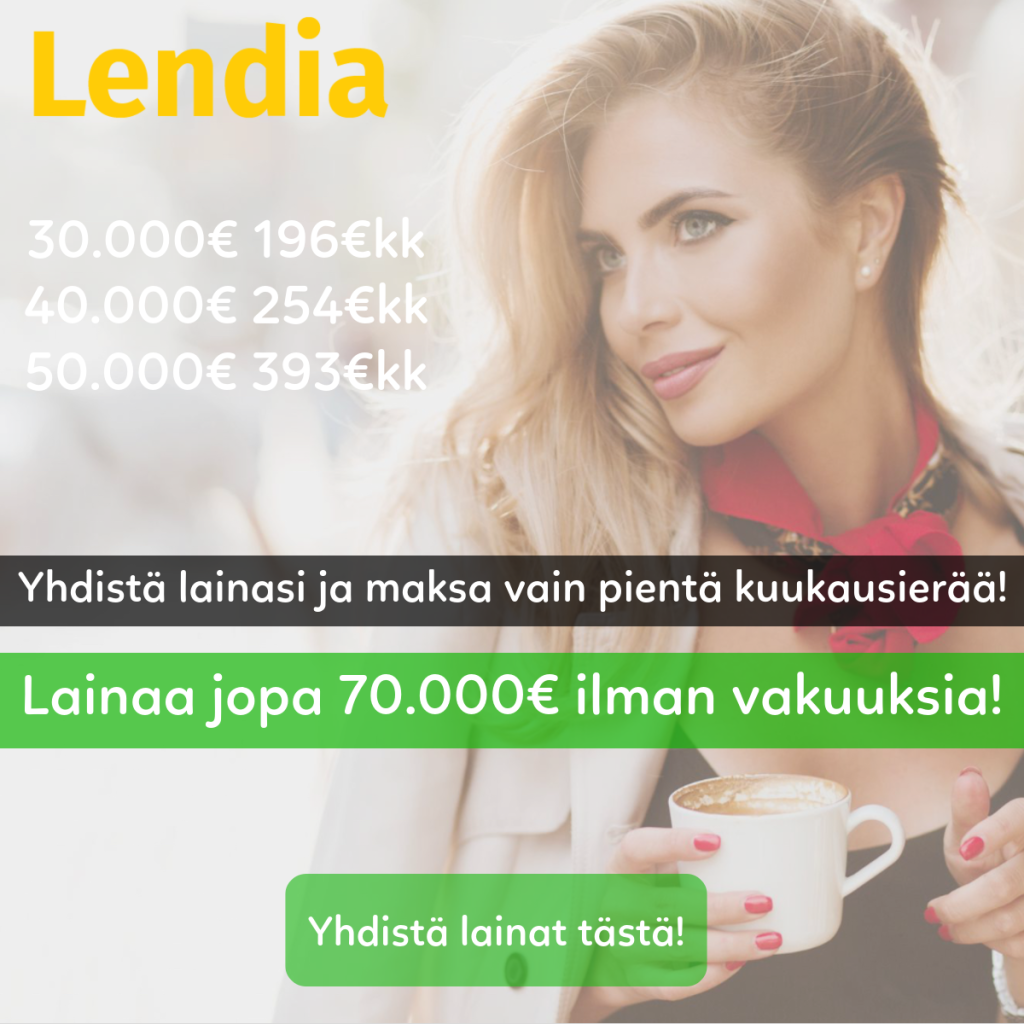 Lendia on kotimainen lainojen yhdistämispalvelu jonka kautta tuhannet tyytyväiset asiakkaat ovat saaneet 20.000€ – 70.000€ kokoisia lainoja ja yhdistelylainoja!